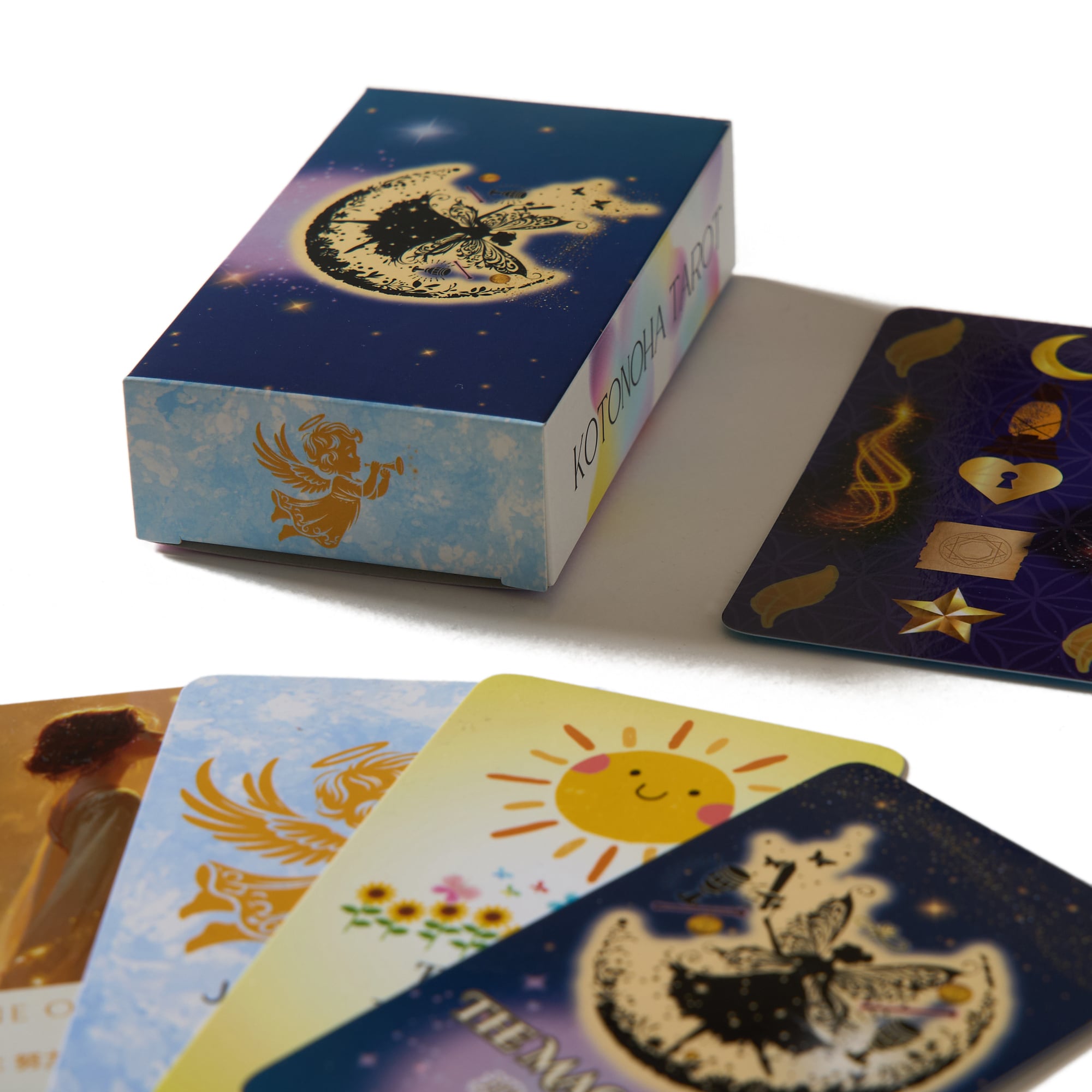 大アルカナには天使、小アルカナには幻想的な世界を描きました。すべてのカードに日本語のメッセージを添えているため、初心者の方でもガイドブックなしで、すぐに心と対話していただけます。